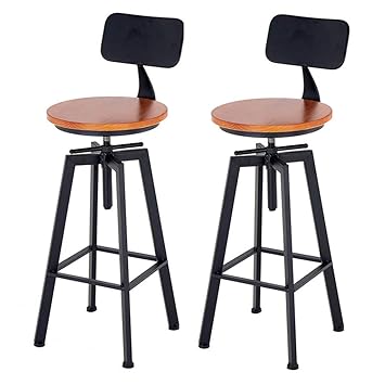 Amazon Com Adjustable Swivel Bar Stools Wood Bar Stool
