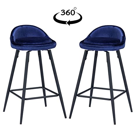 Yongqiang Metal Barstools Set Of 2 Swivel Stool Velvet Upholstered Cushion Dining Chair Kitchen 26 Inch Counter Height Bar Stools Low Back Royal Blue