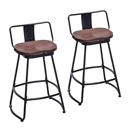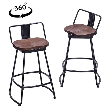 Haobo Home Bar Stools Industrial Metal Bar Stools Counter Height Stools For Indoor Outdoor Dining Chair Set Of 2 Low Back Swivel Black With Wood